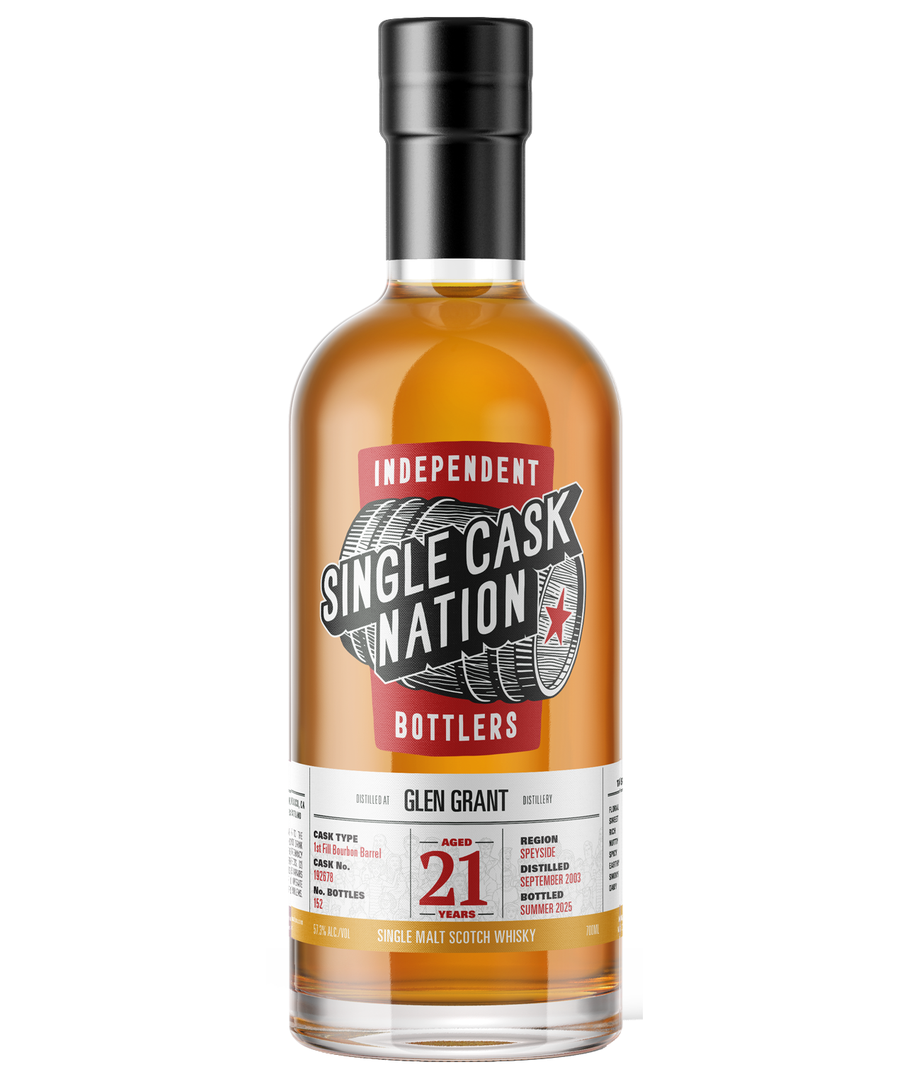 The Glen Grant spirit is just about perfect and, with this bottling, we wanted to show you why we feel this way by showing you a cask of whisky that has no finish, just 21 years in a 1st fill bourbon barrel. Great spirit in top oak makes for a remarkable whisky. Just a perfect, perfect whisky.